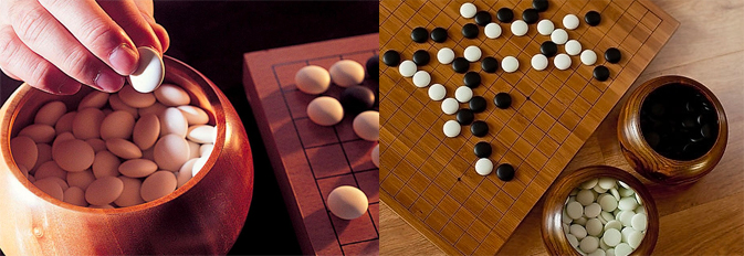 尧让丹朱捡来一些黑色和白色的小石子,然后在地上画了很多小方格,对丹朱说:“黑石子给你,白石子给我,一个石子就是一个兵,你就是将军。咱们轮流在方格线上摆放石子,一次只许放一个,看谁的兵能把对方的兵围住,围住的石子就被消灭掉,必须把它拿走,”丹朱听了很感兴趣,就与尧在地上打起仗来。玩着玩着,丹朱发现自己的黑兵总被白兵消灭,急的抓耳挠腮,尧笑着对丹朱说:“你失败是因为你不爱动脑筋,这与战场打仗一样,必须排兵布阵学习方法,否则是不能取胜的。”丹朱受到了启发,从此以后再也不和小伙伴们瞎打瞎闹了,而是向父亲学习这种游戏的本领,经常入迷的对着方格认真思考,悟出了许多打仗的方法和做人的道理,逐渐变得稳重,聪明了。当他长大以后,真正成为了一名能文善武非常优秀的将军了。尧帝教丹朱玩的这种游戏经过不断发展便成为现在的围棋。